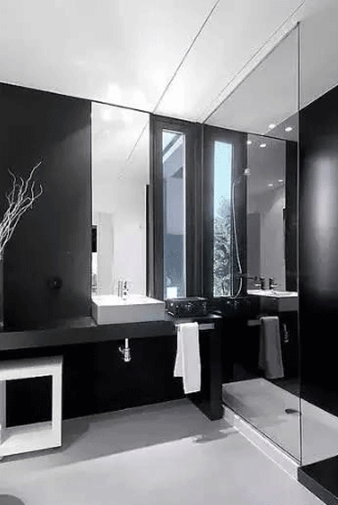 干湿分离的主要手法,就是采用隔断形式,将浴室与其他功能区分开。给洗浴留出了一定的位置后,其他空间全部交给马桶和洗脸台。